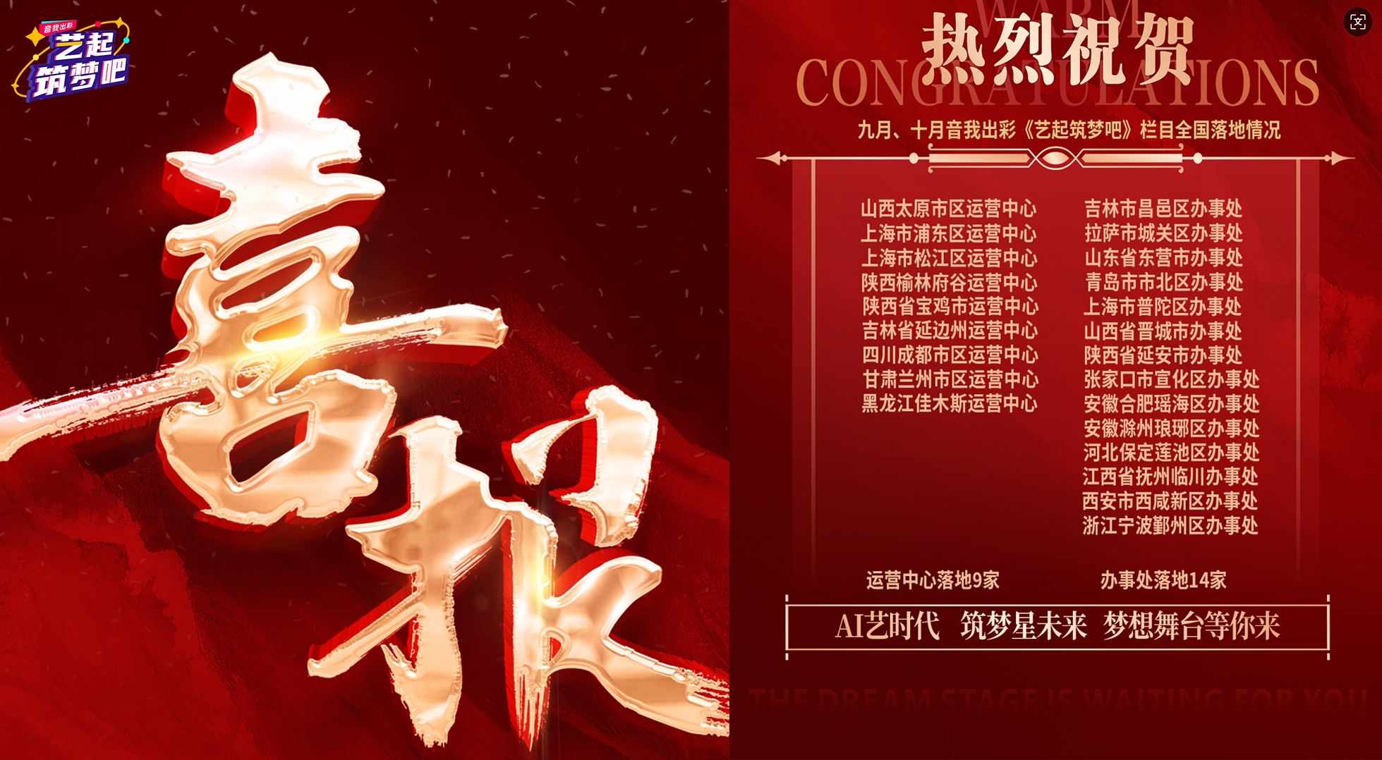 音我出彩《艺起筑梦吧》栏目九月、十月全国落地情况